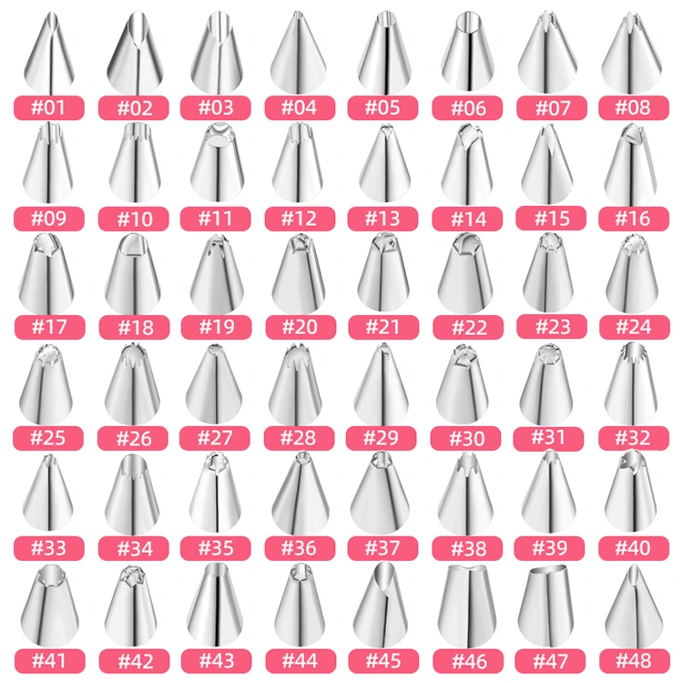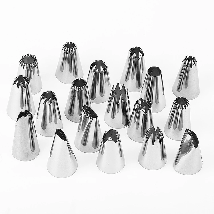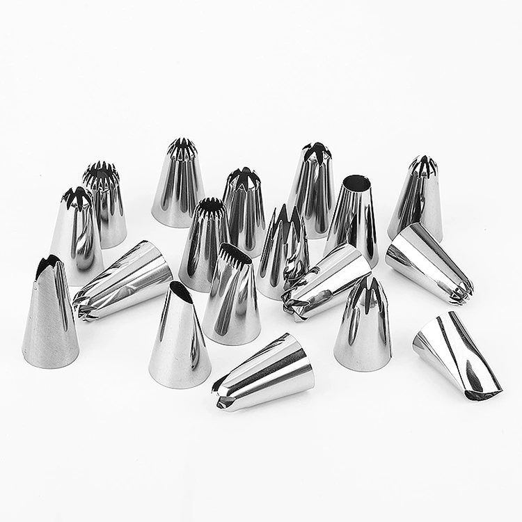 Біз жоғары стандартты материалды таңдау және өңдеу технологиясын ұстанамыз, бұл әрбір құбыр шүмегінің тамаша сапасына және әртүрлі стиль дизайны пайдаланушылардың сараланған шығармашылық қажеттіліктеріне жауап береді. Материалға келетін болсақ, барлық құбыр саптамалары тамақ өнімдерімен байланыста болатын халықаралық қауіпсіздік стандарттарына сәйкес келетін, улы емес және зиянсыз, коррозияға төзімді және тот баспайтын 304 маркалы тағамдық тот баспайтын болаттан жасалған және ешқандай реакциясыз шам балауызы, кілегей және басқа материалдармен тікелей байланыста болуы мүмкін. Біртұтас интеграцияланған технология саңылаулар мен саңылауларды жояды, тегіс ішкі және сыртқы бетті қамтамасыз етеді, бұл материал қалдықтарын болдырмайды, сонымен қатар материалдың тегіс экструзиясы мен ұқыпты пішінін қамтамасыз етеді. Стильдерге келетін болсақ, біз жүздеген нұсқаларды ұсынамыз, оның ішінде дөңгелек, жұлдызша, гүл жапырақшасы, жапырақты, спираль, ирек және басқа пішіндер, сондай-ақ әр стиль үшін әртүрлі өлшемдер — нәзік бөлшектерге арналған шағын саптамалар, қалыпты пішіндеуге арналған орташа саптамалар және шам жасаудың шығармашылық қажеттіліктерін және күнделікті скриншоттарды толығымен жабатын үлкен аумақты безендіруге арналған үлкен саптамалар.